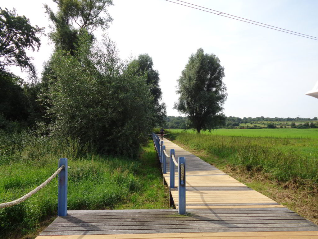 Den Weg kennen wir: Über den Bohlenpfad das Biotop befahren, dann den steilen Anstieg zum Wegkreuz bewältigen. Und da ist er wieder, den wir schon einmal gesehen haben: