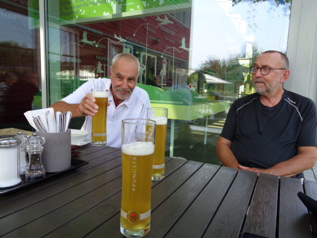 Das haben wir uns verdient. Jeder ein Bier! Natürlich alkoholfrei! Der „Wilde Esel“ lädt zum Verweilen ein. Und nach diesem Genuss und dem notwendigen Toilettenbesuch begeben wir uns auf die Rückfahrt. Es bleibt noch genug Zeit eine in unmittelbarer Nachbarschaft des Gasthauses den Naturpark Weilbach zu besuchen.