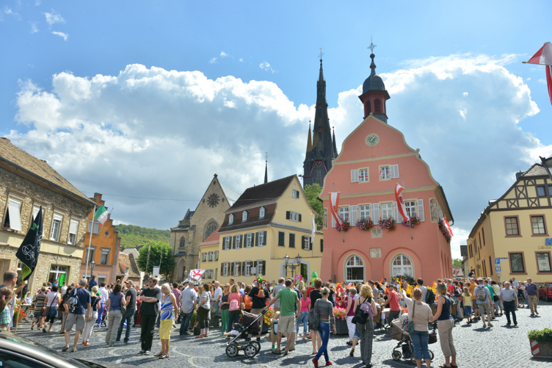 Unfallfrei haben wir den Marktplatz von Gau-Algesheim erreicht. Hurra!